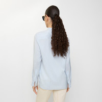 Product Details A long-sleeved shirt made from silk poplin woven with vertical and horizontal stripes. Tailored to a relaxed fit, the grandad collar style features a bib front and is detailed with an embroidered Equestrian Knight Design. - Button closure - Grandad collar - Single-button cuffs - Curved, stepped hem - Embroidered Equestrian Knight Design at front - Relaxed fit: a looser cut than our regular fit. - Item 81162101 Size & Fit - Length: 70cm/27.6in (size UK 8) - Model’s height: 178cm/5ft 10in. Model wears size UK 8 Fabric & Care - 100% silk - Buttons: mother-of-pearl - Specialist dry clean - Imported