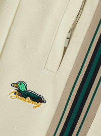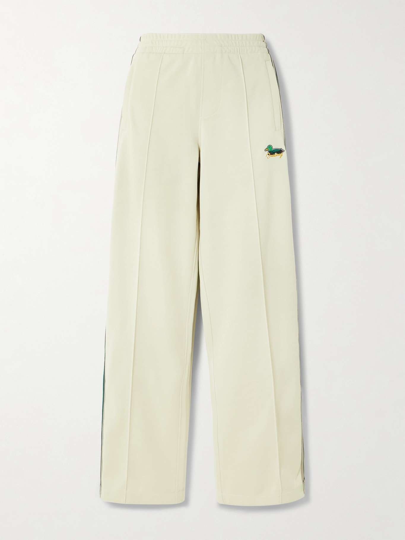EDITORS'NOTES Burberry's track pants are embroidered with a cartoon duck motif and script logo lettering inspired by the house's archives. Made from double-face jersey, they have straight legs traced with webbing stripes and zippers at the cuffs to adjust the split. The elasticated drawstring waistband ensures a comfortable fit. SIZE & FIT Model measurements: - Fits true to size, take your normal size - High-rise, intended for a straight-leg fit - Internal drawcord waist for a flexible fit - Mid-weight, slightly stretchy fabric - Model is 180cm/ 5'11" and is wearing a size Small - Bust: 80cm/ 31.5" - Waist: 65cm/ 25.5" - Hip: 89cm/ 35" DETAILS & CARE - Multicolored jersey - Pull on - 96% polyester, 3% polyamide, 1% elastane - Machine wash