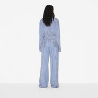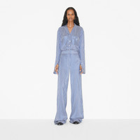 PRODUCT DETAILS Highlighted in a seasonal stripe, framed with contrasting side panels. - Trousers inside leg length: 85cm/33.5in. This is based on a size UK 6. 100% silk Buttons: mother-of-pearl Side slip pockets, back patch pockets Concealed hook-and-bar, button and zip fly closure Specialist dry clean Made in Italy Item 80710311