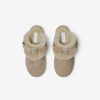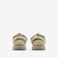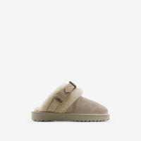 Product Details Italian-made mules in calf suede with a shearling collar and lining. The slip-on style features B buckle straps and chunky rubber soles moulded with our Equestrian Knight Design. - Rounded toe - Shearling lining - Equestrian Knight Design at sole - Comes with a dust bag - Item 80953511 Fabric & Care - Upper: 50% calf suede, 40% sheep leather, 6% cotton, 4% viscose - Trim: 80% zinc alloy, 20% copper - Lining: 100% sheep leather - Sole: 100% thermoplastic polyurethane - Made in Italy