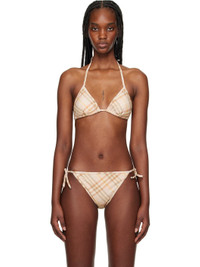 Beige Check Bikini Top