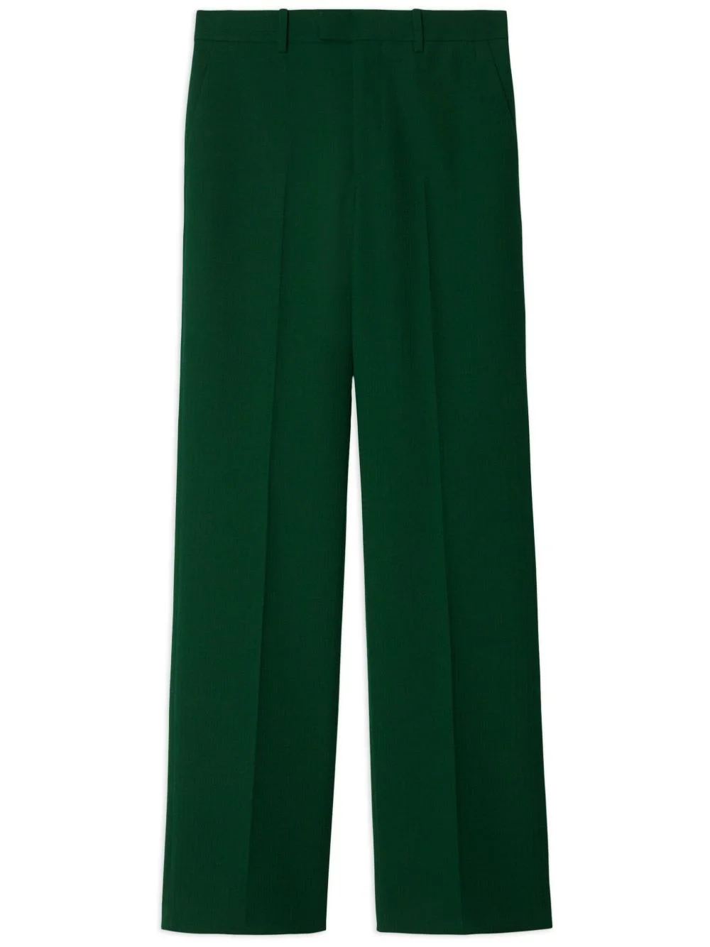 tailored-cut wool trousers Highlights - Dark green - Wool - Belt loops - Tailored cut - Straight leg - Concealed front fastening - Rear jetted pocket - Straight hem Made in Italy Composition Lining: Viscose 100% Outer: Wool 100%, Buffalo Horn 100% Washing instructions Dry Clean Only