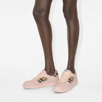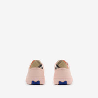 Product Details Italian-made sneakers in smooth calf leather, with a contrasting cuff and side panel woven with the Burberry Check in our signature sand colourway. The style features an Equestrian Knight Design label and the soles are moulded with archive Burberry lettering. - Lace-up closure - Equestrian Knight Design label at tongue - Burberry lettering at sole - Comes with a dust bag - Item 81110041 Fabric & Care - Upper: 74% calf leather, 25% polyamide, 1% polyurethane - Trim: 100% polyester - Lining: 60% sheep leather, 34% leather, 6% goat suede - Sole: 100% thermoplastic polyurethane - Made in Italy