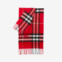 Product Details The iconic Burberry Check cashmere scarf, woven on traditional looms at a 200-year-old Scottish mill. The fabric is washed in local spring water and brushed with teasels for an ultra-soft finish. - Rectangular - Fringing at both ends - Item 80497131 Size & Fit - 168 x 30cm/66.1 x 11.8in Fabric & Care - 100% cashmere - Specialist dry clean - Made in Scotland