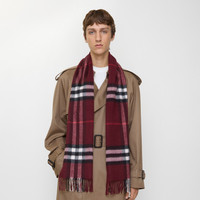 Product Details The iconic Burberry Check cashmere scarf, made in Scotland at a mill founded in 1797. Woven on traditional looms, the scarf takes more than 30 steps to complete. The fabric is washed in local spring water and brushed with teasels – dried flowers that are drawn along the surface of the cashmere to ’raise’ the cloth, creating a natural lustre and ultra-soft finish. - Rectangular - Fringing at both ends - Item 81126391 Size & Fit - 168 x 30cm/66.1 x 11.8in Fabric & Care - 100% cashmere - Specialist dry clean - Made in Scotland