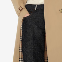 Product Details The iconic Burberry trench coat, made in England from shower-resistant cotton gabardine. Inside is Burberry Check cotton, used to line our coats since the 1920s. Part of the Heritage Collection, the Chelsea is cut to a slim fit with set-in sleeves. - Double-breasted button closure - Hook-and-eye collar closure - Throat latch - Epaulettes - Belt - Side button welt pockets - Belted cuffs - Back button vent - Burberry Check lining and undercollar - Slim fit: this style is cut to a fitted silhouette. Fits true to size, take your normal size. - *Containing organic cotton - Item 80794071 Size & Fit - Length: 105cm/41.3in (size UK 6) - Model’s height: 177cm/5ft 9in. Model wears size UK 6 Fabric & Care - Outer: 100% cotton* - Lining: 100% cotton - Sleeve lining: 100% viscose - Buckles: 100% calf leather - Specialist dry clean - Made in Yorkshire, England