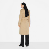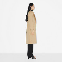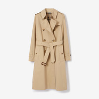 PRODUCT DETAILS The iconic Burberry trench, made in Yorkshire from shower-resistant gabardine. - Coat length: 105cm/41.3in. This is based on a size UK 6. - Model’s height: 177cm/5ft 10in. Model wears size UK 8. Regular fit. This style runs true to size, take your normal size. Outer (bespoke gabardine): 100% cotton* Lining (Burberry Check): 100% cotton Sleeve lining: 100% viscose Buckles: calf leather Double-breasted closure Button-through welt pockets Back button-through vent Signature details: epaulettes, hook-and-eye collar closure, gun flap, belted cuffs, D-ring belt, Burberry Check undercollar, storm shield Specialist dry clean Made in England Alterations can be made using our in-store service. Please see FAQs for details. *Containing organic cotton Item 80592331