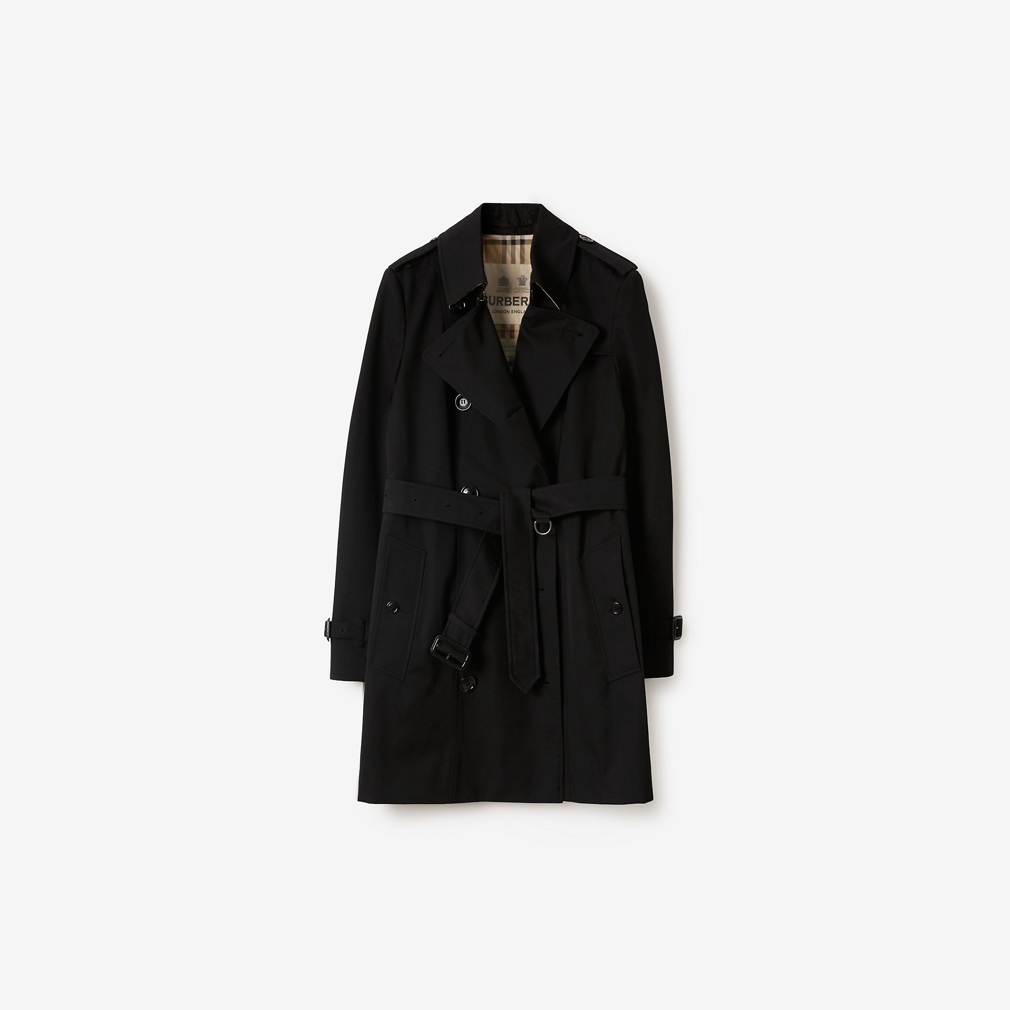 Product Details The iconic Burberry trench coat, made in England from shower-resistant cotton gabardine. Inside is Burberry Check cotton, used to line our coats since the 1920s. Part of the Heritage Collection, the Chelsea is cut to a slim fit with set-in sleeves. Double-breasted button closure Hook-and-eye collar closure Throat latch Epaulettes Belt Side button welt pockets Belted cuffs Back button vent Burberry Check lining and undercollar - Slim fit: this style is cut to a fitted silhouette. Fits true to size, take your normal size. - Item 80592591 Size & Fit - Length: 87cm/34.3in (size UK 10) - Model’s height: 177cm/5ft 10in. Model wears size UK 10 Fabric & Care - Outer: 100% cotton - Lining: 100% cotton - Sleeve lining: 100% viscose - Buckles: 100% calf leather - Specialist dry clean - Made in Yorkshire, England