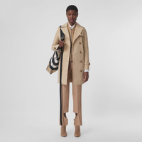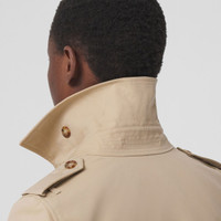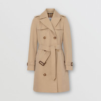 PRODUCT DETAILS A contemporary take on our classic trench coat, shaped to a narrow silhouette and cut to a shorter fit. Made from English-woven cotton gabardine, the style features symmetrical gun flaps and a Vintage check lining. Coat length: 90cm/35.4in. This is based on a size UK 8 as proportions change slightly according to size. Model’s height: 176cm/5ft 9in. Model wears size UK 6. Outer: 100% cotton Lining: 100% cotton Sleeve lining: 100% viscose Buttons: buffalo horn Buckles: 100% leather Double-breasted closure Button-through welt pockets Signature details: epaulettes, gun flaps, belted cuffs, D-ring belt, check undercollar, storm shield Specialist dry clean Imported 80168261