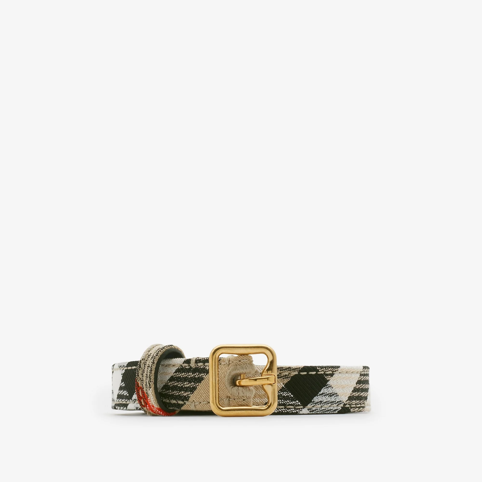 Product Details An Italian-made belt in a cotton blend, woven with a seasonal check. The design is lined in smooth calf leather and has a gold-plated B buckle. - Hand-painted edges - Engraved Burberry lettering at buckle - Comes with a dust bag - Item 80999361 Size & Fit - 1.5cm/0.6in wide Fabric & Care - Outer: 65% polyester, 35% cotton - Lining: 100% calf leather - Made in Italy