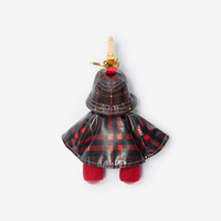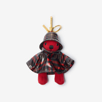Product Details Our signature teddy charm in wool cashmere, wearing a matching bucket hat and poncho printed with the Burberry Check. The design features moveable arms and legs. This is not a toy and is intended for collectors of 14 years of age and above. - Brushed metal hardware - Engraved Burberry lettering at clasp - Item 81155261 Size & Fit - 14cm/5.5in tall Fabric & Care - Bear: 90% wool, 10% cashmere - Trim: 100% leather - Filling: 100% polyester fibres - Hat and poncho: 100% polyester - Imported