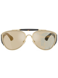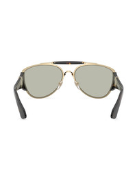 tortoise-shell pilot frame sunglasses Highlights - Gold-tone - Metal - Tortoiseshell effect - Pilot frame - Tinted lenses - Nose pads - Logo plaque at the arm - Straight arms - Curved tips - These glasses come with a protective case. Made in United States Composition Metal 100% SIZE & FIT Measurement Bridge Width 0.7 in(1.8 cm) Lens Diameter 2.36 in(6 cm)