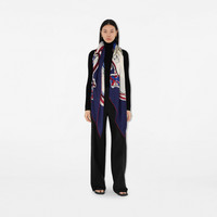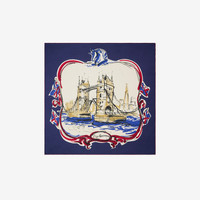 Product Details A scarf made in Italy from cashmere silk twill. The style is printed with hand-painted artwork depicting London’s Tower Bridge within a border of Union Jack flags, the Burberry logo and the horse from our Equestrian Knight Design. - Square - Hand-rolled edges - Printed Burberry lettering - Item 80996581 Size & Fit - 140 x 140cm/55.1 x 55.1in Fabric & Care - 68% cashmere, 32% silk - Specialist dry clean - Made in Italy