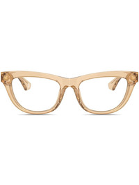 transparent-design cat-eye glasses Highlights - Beige - Acetate - Cat-eye frame - Clear lenses - Transparent design - Gold-tone logo plaque - Straight arms - Curved tips - These glasses come with a protective case. - All glasses from farfetch are sold as non-prescription frames. Made in United States Composition Acetate 100% SIZE & FIT Measurement Arm Length 5.51 in(14 cm) Bridge Width 0.7 in(1.8 cm) Lens Diameter 2.04 in(5.2 cm)