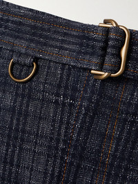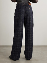 Burberry's pants are made from cotton-tweed that's woven with a subtle version of the house's signature checks. Designed in a wide-leg shape, they're pleated for added volume and have a high, belted waist. Size & Fit - Fits true to size, take your normal size - Those with curvy hips may wish to take the next size up - High-rise, designed for a wide-leg fit - Mid-weight, non-stretchy fabric - Model is 180cm/ 5’11” and is wearing a size 27 Model measurements: - Bust: 81cm/ 32" - Waist: 64cm/ 25" - Hip: 89cm/ 35" Details & Care - Navy cotton-tweed - Concealed hook and zip fastening at front - 100% cotton; trim: 100% leather (Lamb) - Machine wash