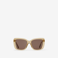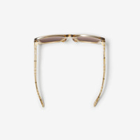 Product Details A pair of oversized square-frame sunglasses made in Italy from transparent acetate. The contrasting temples are patterned with the Burberry Check and our logo. - Scratch-resistant dark brown lenses with 100% UV protection - Printed Burberry lettering at temples - Comes with a hard leather case and cleaning cloth - Also available in an alternative fit - Item 40845091 Size & Fit - Frame width: 14.4cm/5.7in. Frame height: 5.6cm/2.2in Fabric & Care - Frame: 100% acetate* - *The bio-based acetate used for the frame contains at least 50% bio-based content derived from plant-based renewable resources - Made in Italy