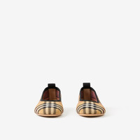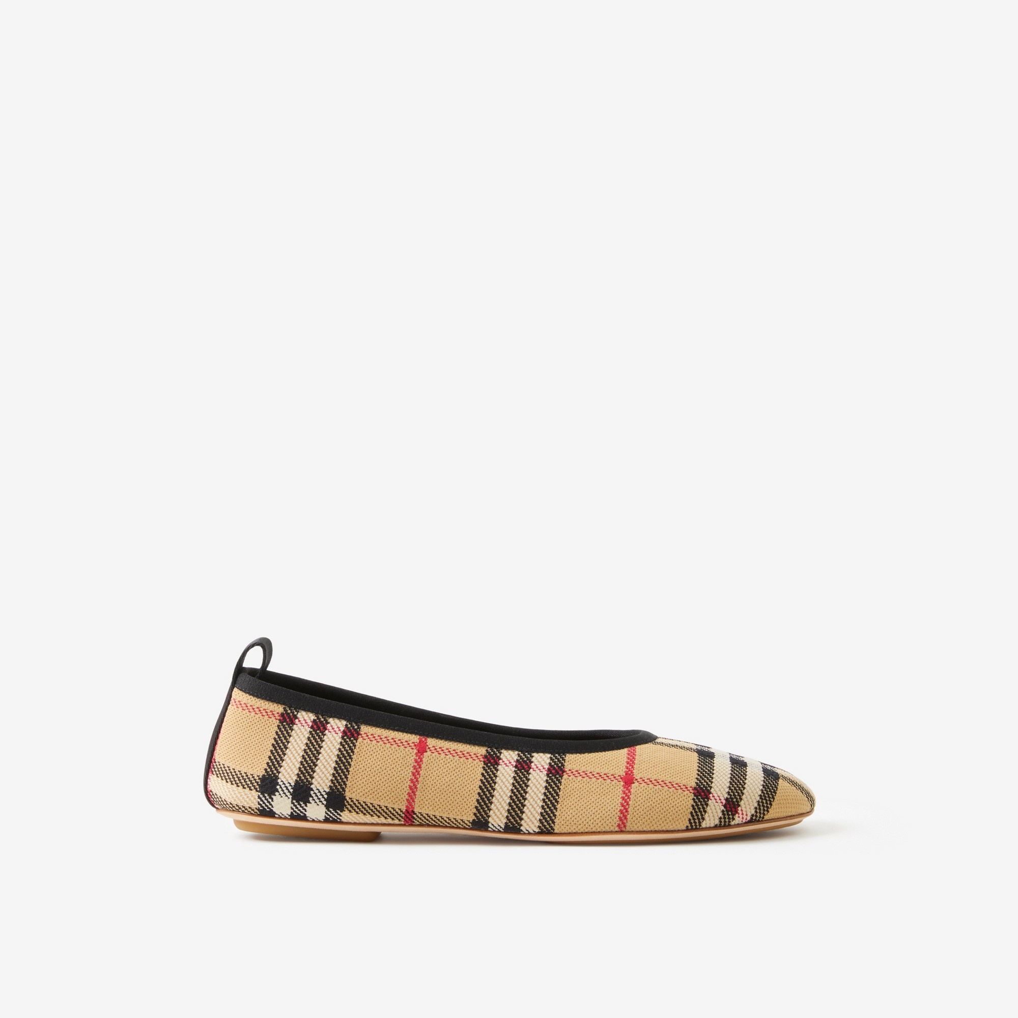 PRODUCT DETAILS A classic ballerina silhouette reimagined in a technical knit, animated with our archival Vintage check. Upper: 93% polyamide, 5% elastane, 2% polyester Lining: 77% polyamide, 20% sheep leather, 3% elastane Sole: 60% calf leather, 40% thermoplastic polyurethane Slip-on style Rounded toe Made in Italy Item 80535891