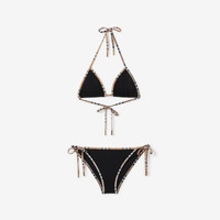 Product Details A halterneck bikini in stretch nylon edged with the Burberry Check. The design features side-tie briefs. - Removable padded cups - Hand wash - Item 80704631 Size & Fit - Model’s height: 178cm/5ft 10in. Model wears size UK S Fabric & Care - Outer: 71% polyamide, 29% elastane - Trim: 74% polyamide, 26% elastane - Lining: 73% polyamide, 27% elastane - Imported