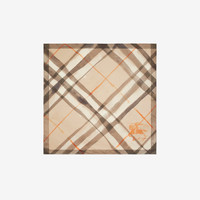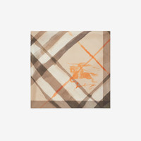 Product Details A square scarf made in Italy from silk twill, printed with a watercolour-effect Burberry Check and our Equestrian Knight Design. - Square - Hand-rolled edges - Printed Burberry lettering - Item 81073011 Size & Fit - 90 x 90cm/35.4 x 35.4in Fabric & Care - 100% silk - Specialist dry clean - Made in Italy