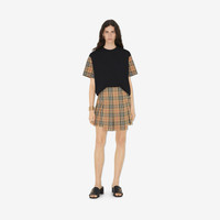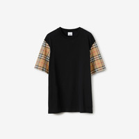 Product Details A cotton jersey T-shirt with contrasting sleeves in Burberry Check. The crew-neck style is cut to an oversized fit. - Rib-knit neckline - Oversized fit: our loosest cut, designed for exaggerated proportions. We recommend sizing down. - Machine wash - Item 80430571 Size & Fit - Length: 70cm/27.6in (size UK S) - Model’s height: 177cm/5ft 10in. Model wears size UK S Fabric & Care - 100% cotton - Trim: 98% cotton, 2% elastane - Made in Portugal