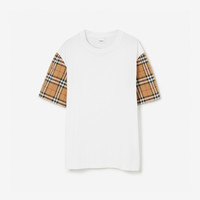 Product Details A cotton jersey T-shirt with contrasting sleeves in Burberry Check. The crew-neck style is cut to an oversized fit. - Rib-knit neckline - Oversized fit: our loosest cut, designed for exaggerated proportions. We recommend sizing down. - Machine wash - Item 80427161 Size & Fit - Length: 70cm/27.6in (size UK S) - Model’s height: 177cm/5ft 10in. Model wears size UK S Fabric & Care - 100% cotton - Trim: 98% cotton, 2% elastane - Made in Portugal