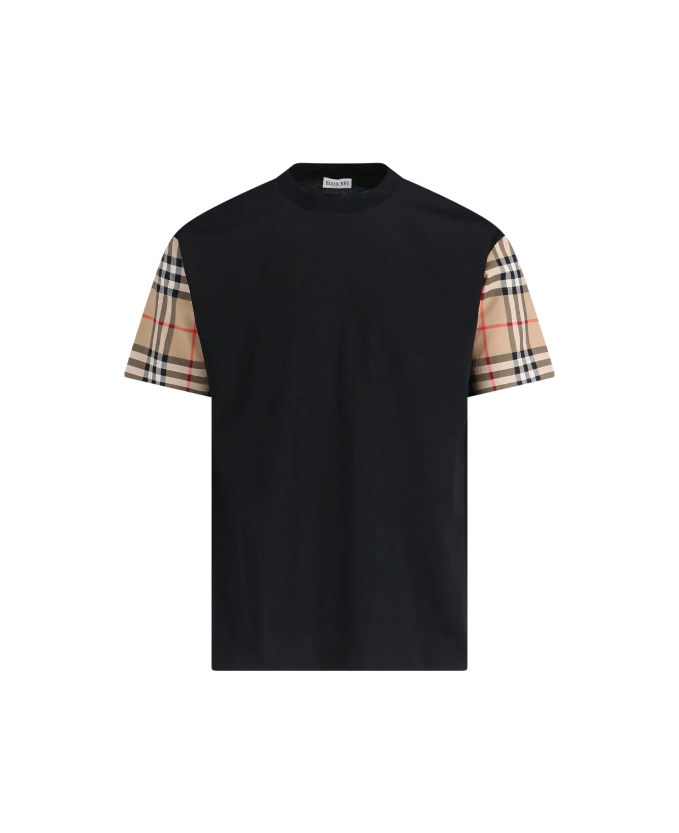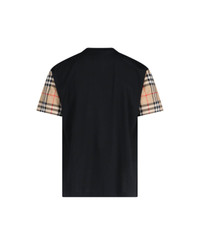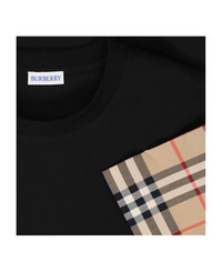 Burberry 'Vintage Check' black cotton crew neck t-shirt with beige short sleeves, multicolor pattern detail, straight hem. Composition: 100% Cotton Made in: Portugal Size and fit: - vestibilita regolare Model number: 8073028A1189