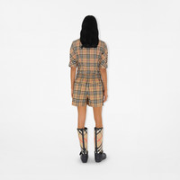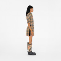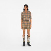 Product Details A shirt cut from stretch cotton twill, woven with the Burberry Check. Shorten the sleeves by using the button-through tabs. - Concealed button closure - Point collar - Single-button cuffs - Curved hem - Slim fit: this style is cut to a fitted silhouette. Fits true to size, take your normal size. - Machine wash - Item 80184751 Size & Fit - Length: 66cm/26in (size UK 6) - Model’s height: 177cm/5ft 10in. Model wears size UK 6 Fabric & Care - 95% cotton, 5% elastane - Imported