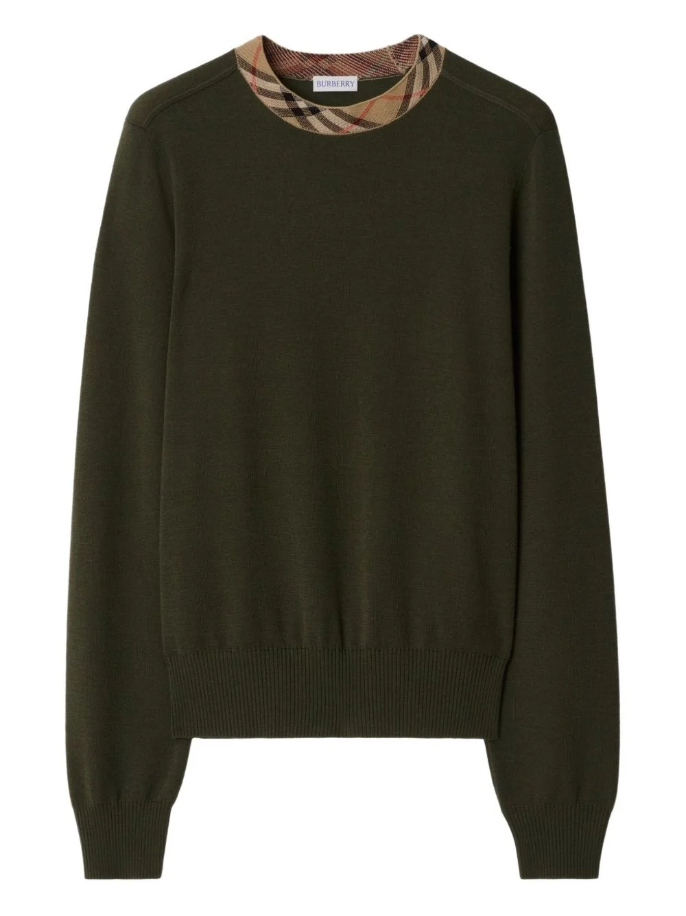 Vintage Check-trim jumper Highlights - Coffee brown - Fine knit - Crew neck - Long sleeves - Ribbed cuffs and hem Imported Composition Wool 100%, Cotton 93%, Polyamide 6%, Elastane 1% Washing instructions Dry Clean Only