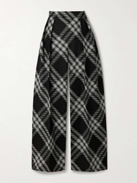 EDITORS'NOTES Burberry's Creative Director, Daniel Lee, re-imagines the house's iconic checks in a fresh, contemporary way. Tailored from soft wool, these pants have sharp pleats that run along the relaxed legs. Style yours with a pop of color. SIZE & FIT - Fits true to size, however those who are between sizes should take the smaller size - High-rise, tailored for a straight-leg fit - Mid-weight, non-stretchy fabric - Model is 180cm/ 5'11" and is wearing a UK 6 DETAILS & CARE - Black and white wool - Concealed button, hook and zip fastening at front - 100% wool; lining: 100% viscose - Dry clean