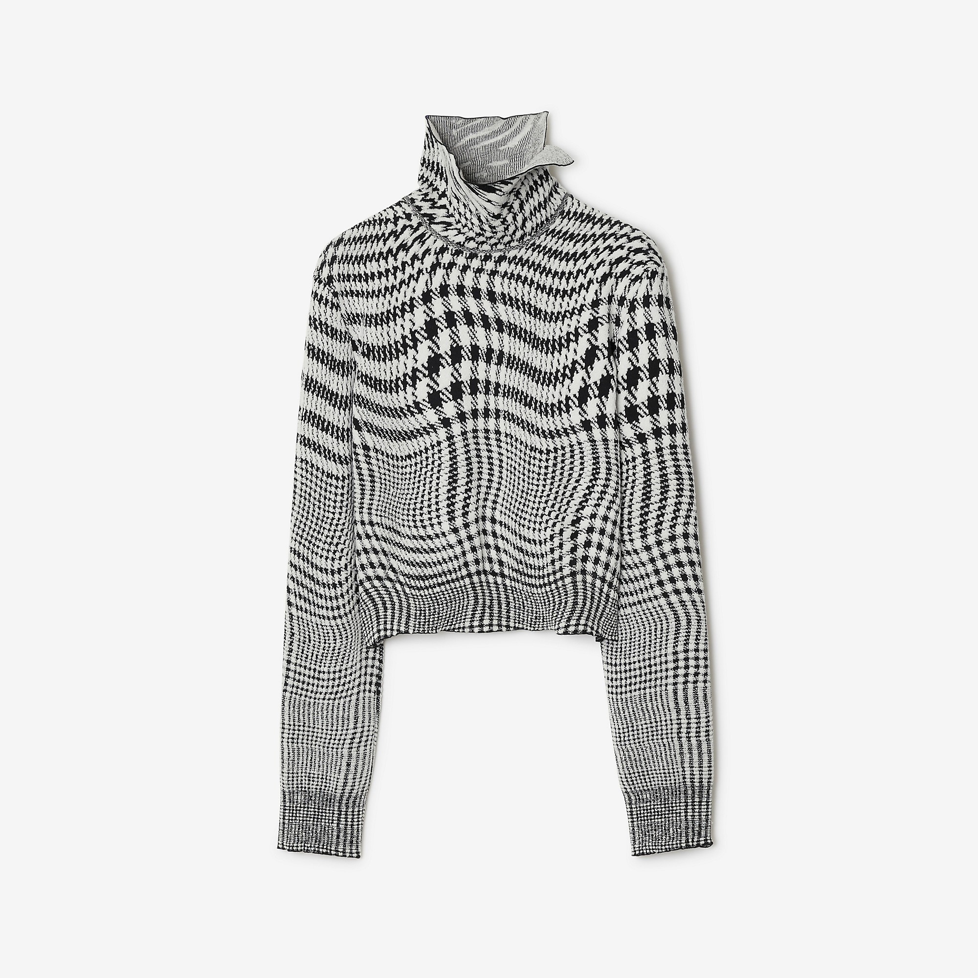 Product Details A turtleneck sweater in a stretch wool blend, jacquard-woven with a warped houndstooth pattern. The style is cut to a regular fit. - Turtleneck with split - Regular fit. Fits true to size, take your normal size. - Item 80808851 Size & Fit - Length: 52.5cm/20.7in (size UK S) - Model’s height: 175cm/5ft 9in. Model wears size UK S Fabric & Care - 58% wool, 28% polyester, 13% polyamide, 1% elastane - Specialist dry clean - Made in Italy
