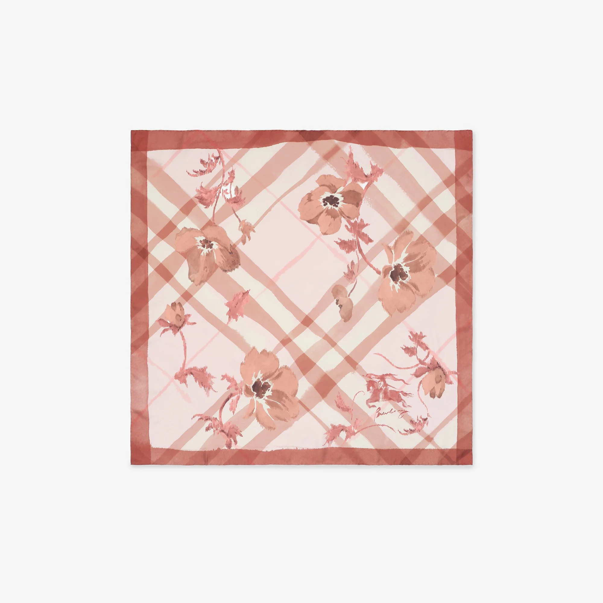 Product Details A square scarf made in Italy from silk twill. The design is printed with a watercolour-effect Burberry Check overlaid with delicate florals. - Square - Hand-rolled edges - Printed Burberry lettering at corner - Item 81239231 Size & Fit - 90 x 90cm/35.4 x 35.4in Fabric & Care - 100% silk - Specialist dry clean - Made in Italy