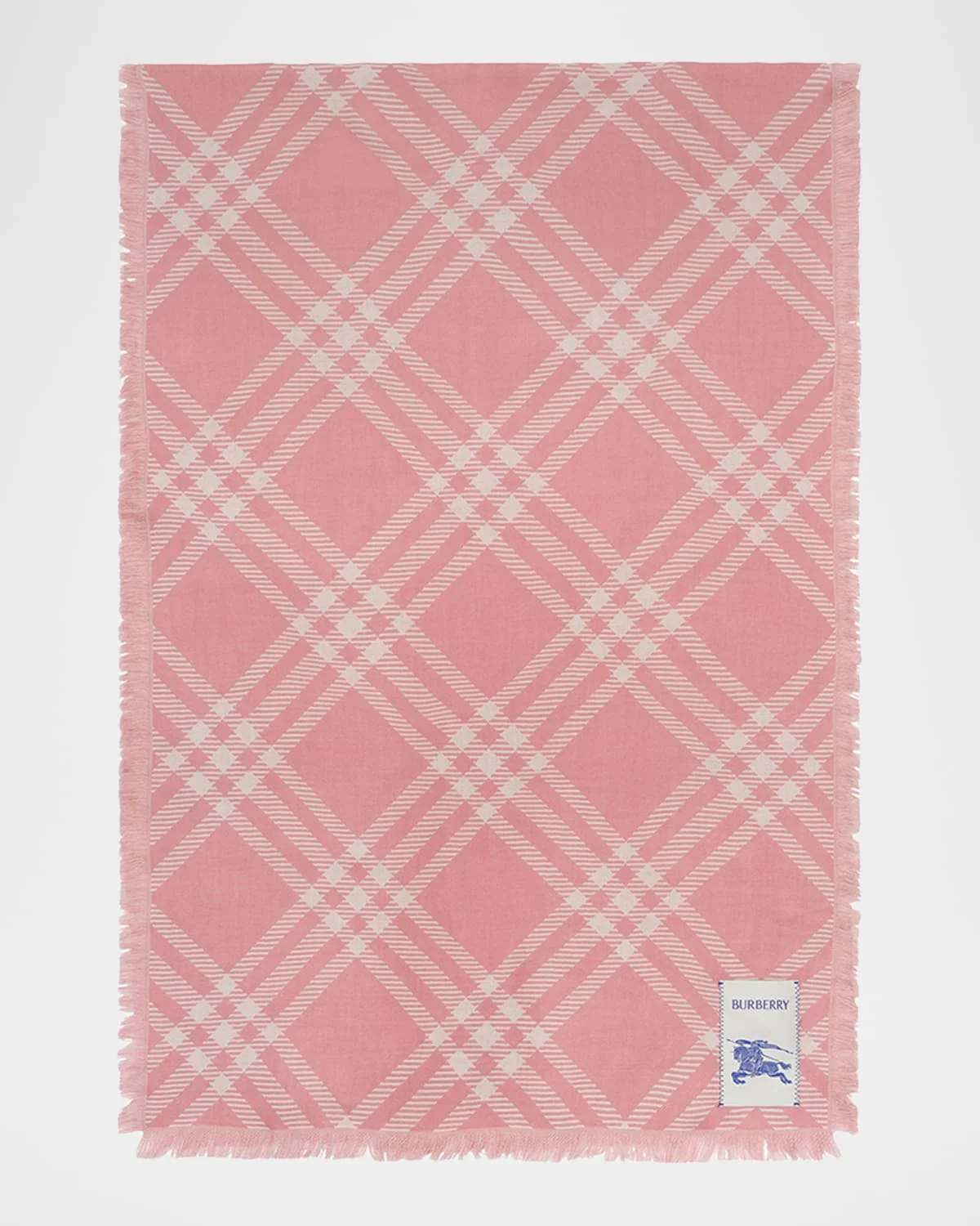 Woven with the house & apos;s iconic check pattern, this lightweight scarf from Burberry is finished with an & nbsp;Equestrian Knight Design label. Approx. 78.7"L x 25.6"W Rectangular silhouette Eyelash fringing at edges Wool/silk Dry clean Made in Italy