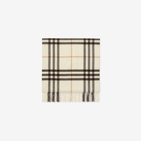 Product Details A cashmere scarf made in Scotland at a mill founded in 1797. The style is patterned with the Burberry Check and cross-stitched with a tonal Equestrian Knight Design. Woven on traditional looms, the fabric is washed in local spring water and brushed with teasels – dried flowers that are drawn along the surface of the cashmere to 'raise' the cloth, creating a natural lustre and ultra-soft finish. Two further washes are given for a fuller texture. - Rectangular - Fringing at both ends - Item 81176761 Size & Fit - 200 x 52cm/78.7 x 20.5in Fabric & Care - 100% cashmere - Specialist dry clean - Made in Scotland