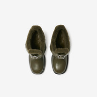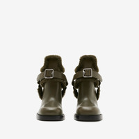 Product Details Italian-made ankle boots in shearling and smooth calf leather with B buckle straps inspired by equestrian styles. Set on a block heel, the leather sole is embossed with the Equestrian Knight Design. - Rounded toe - Quilted check insole - Equestrian Knight Design at sole - Comes with a dust bag - Item 80949661 Size & Fit - Heel height: 8.5cm/3.4in Fabric & Care - Upper: 90% calf leather, 10% lamb shearling* - Trim: 98% zinc alloy, 2% copper - Lining: 80% lamb shearling, 10% calf leather, 10% goat suede - Sole: 90% calf leather, 6% thermoplastic polyurethane, 4% ABS - *100% real farm dyed lamb shearling, ovies aries, country of origin: Spain - Made in Italy