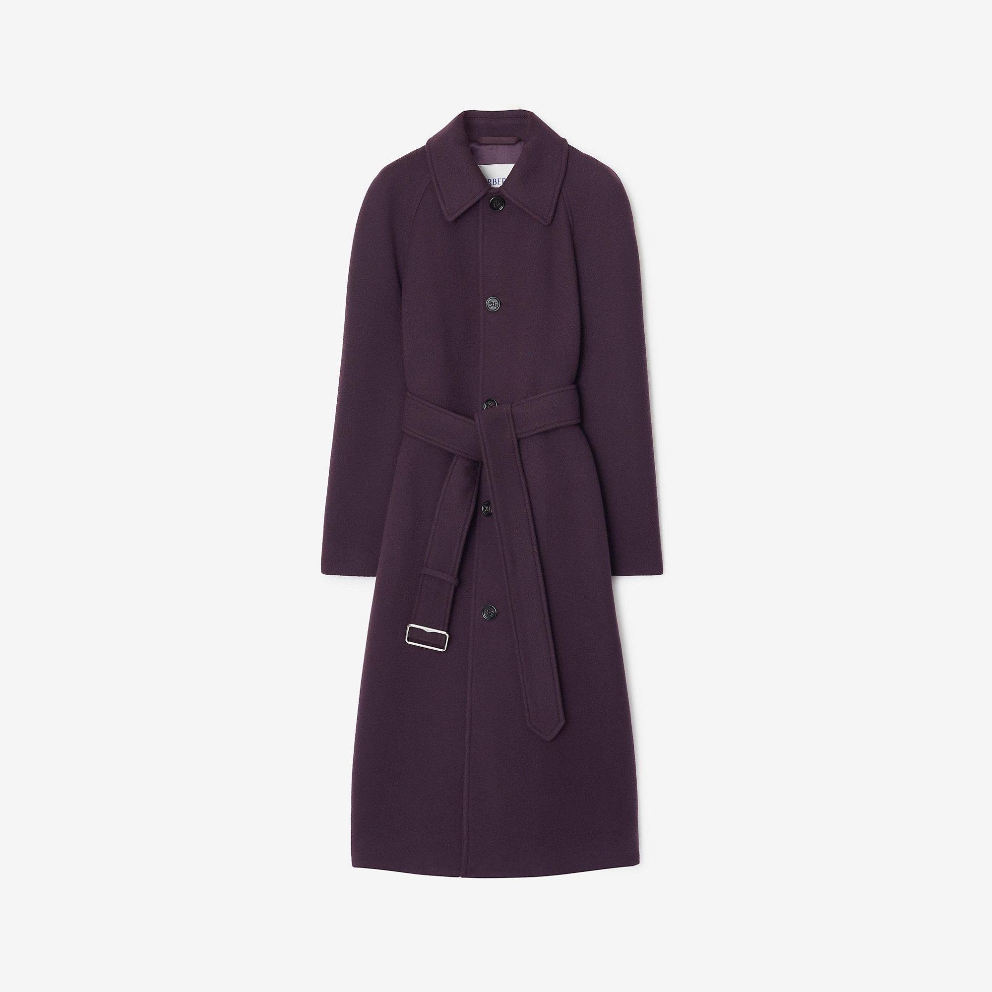PRODUCT DETAILS A single-breasted coat in brushed wool twill. Tailored to a regular fit it has a B buckle belt to adjust the shape. - Length: 115cm/45.3in (size UK 6) - Model’s height: 173cm/5ft 8in. Model wears size UK 6 Regular fit Outer: 100% wool Undercollar: 100% wool Lining: 100% viscose Buttons: buffalo horn Buckle: brass Specialist dry clean Imported Item 80773581