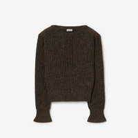 Product Details Regular fit. Fits true to size, take your normal size. A rib-knit sweater, crafted in Italy from heavyweight wool cashmere to a regular fit. The style is finished with cotton nylon gabardine shoulder patches and tie closures at the boat neck. Part of our Gabardine Capsule, the design pays homage to the house’s iconic signature – a revolutionary fabric invented by Thomas Burberry, worn by explorers and everyday adventurers alike. - Self-tie collar - Item 81131081 Size & Fit - Regular fit. Fits true to size, take your normal size. - Length: 54cm/21.3in (size UK S) Fabric & Care - 97% wool, 3% cashmere - Trims: 67% cotton, 33% polyamide; 94% wool, 3% cashmere, 2% polyamide, 1% elastane - Specialist dry clean - Made in Italy