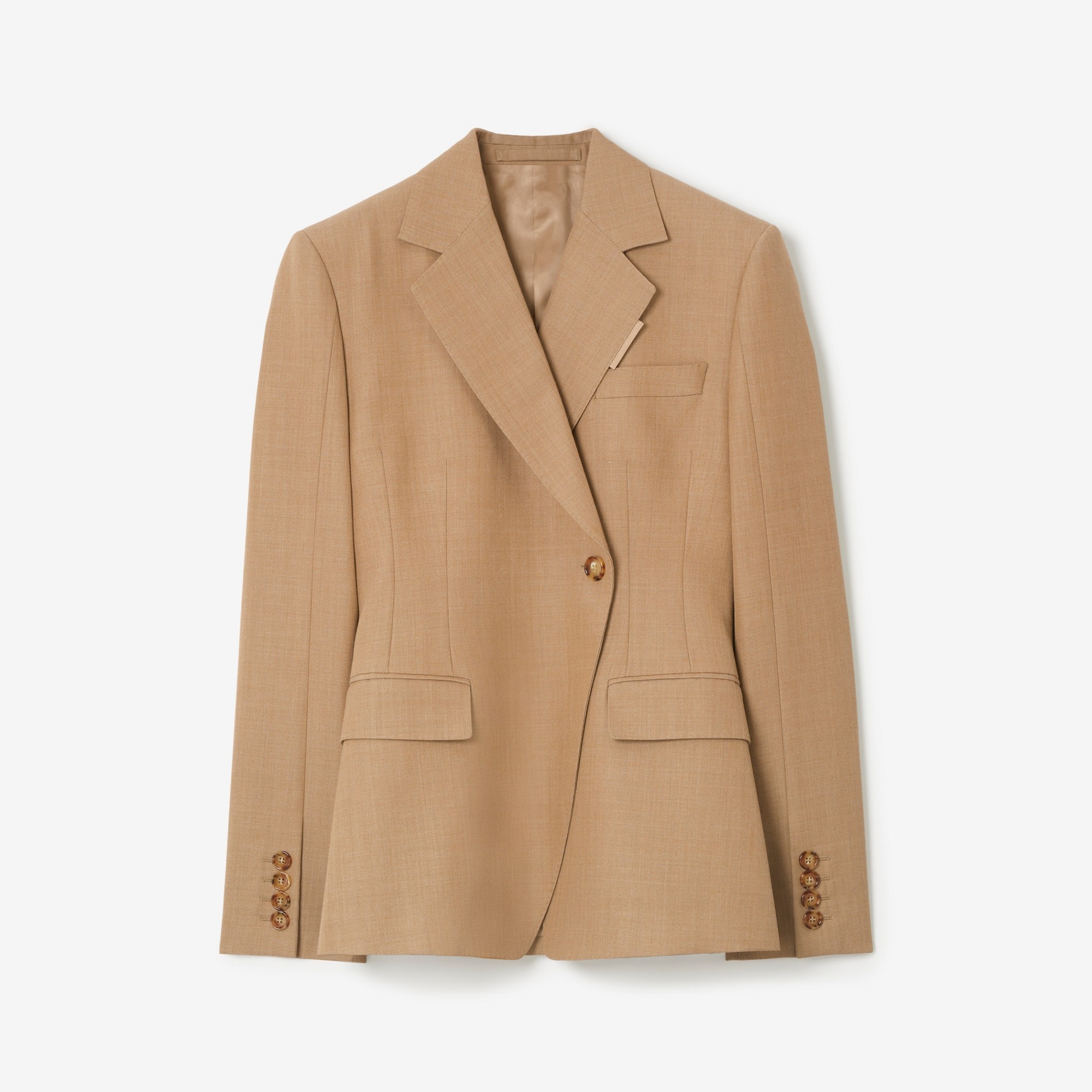 PRODUCT DETAILS Cut to a slim fit and styled with an asymmetric single-breasted closure. - Jacket length: 69cm/27.2in. This is based on a size UK 6. Slim fit. This style is cut to a fitted silhouette. Outer: 100% wool bonded to 100% linen Undercollar: 70% wool, 30% viscose Lining: 100% cupro Single-breasted closure, notch lapels, chest welt pocket, flap pockets, interior button-through jet pocket, working cuffs, single vent Specialist dry clean Made in Italy Item 80711551