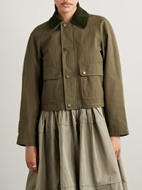 EDITORS'NOTES Made from weighty cotton-twill, Burberry's jacket is cut for a boxy fit and trimmed with a corduroy pointed collar. Balance the short hem with high-rise pants and roll the cuffs to show off the classic checked lining. SIZE & FIT Model measurements: - Fits true to size, take your normal size - Designed for a slightly loose fit - Mid-weight, non-stretchy fabric - Model is 175cm/ 5'9" and is wearing a UK 8 - Bust: 81cm/ 31.75" - Waist: 63cm/ 24.75" - Hip: 91cm/ 36" DETAILS & CARE - Army-green cotton-twill, dark-green cotton-corduroy - Snaps and concealed zip fastening through front - 100% cotton - Dry clean