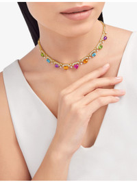 PRODUCT DETAILS - Bvlgari 18ct yellow-gold, 0.95ct brilliant-cut diamond and 5.71ct mixed-gemstone necklace - 100% 18ct yellow gold; stones 10 diamonds, 167 gemstones: amethyst, peridot, pink tourmaline, citrine quartz, blue topaz - Polished finish, pave-set stones - Carat weight: diamond 0.95ct, mixed gemstones 5.71ct - Carat cut: round brilliant - Carat clarity:diamond IF-VS - Carat colour: diamond D-G - Made in Italy - Please use a soft, dry polishing cloth - Two-year manufacturer's warranty - Bvlgari prides itself on providing excellent customer service. This includes contacting customers to offer after-sales care and share details about its brand and products. As such, when you order a Bvlgari product from us, your details will be passed onto Bvlgari so that it can provide these services to you. Ref: R04319500