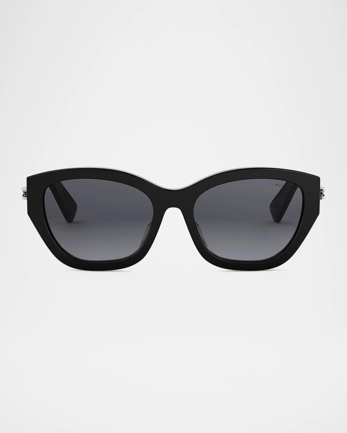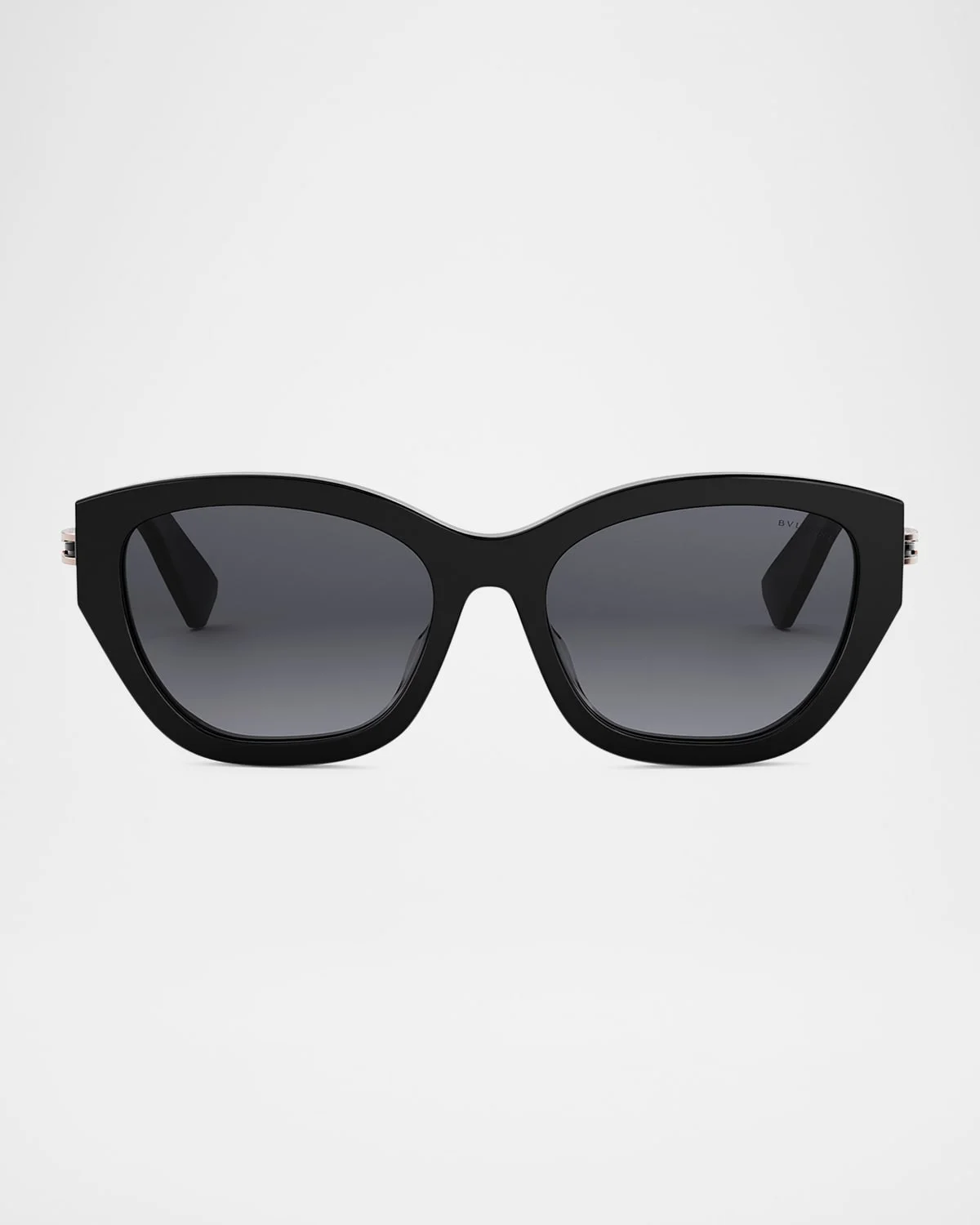 BVLGARI "B.Zero1" cateye sunglasses in acetate Lasered logo on temples and underlacquer metal logo inside right temple, lasered logo on lens Lens/bridge/temple (in mm): 5618140 Gradient lenses Saddle nose bridge Thin, tapered arms 100% UVA/UVB protection Made in Italy