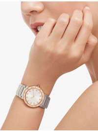PRODUCT DETAILS - Bvlgari BBL33C6SP12 BVLGARI BVLGARI 18ct rose-gold, stainless steel and 0.21ct diamond watch - 100% 18ct rose gold, 100% sterling silver - 12 diamonds - Style number: BBL33C6SP12 - Folding-buckle fastening - Crown set with a cabochon-cut pink rubellite, silvered sunray dial, calibre B043 - Carat: 0.21ct - Cut: round brilliant - Dial: round - Glass: synthetic sapphire - Case diameter: 33mm - Water resistance: more than 3 bar / 3 atm / 30m - Made in Switzerland - Please refer to the brand’s care instructions - 5-year warranty - Bvlgari prides itself on providing excellent customer service. This includes contacting customers to offer after-sales care and share details about its brand and products. As such, when you order a Bvlgari product from us, your details will be passed onto Bvlgari so that it can provide these services to you Ref: R04319483