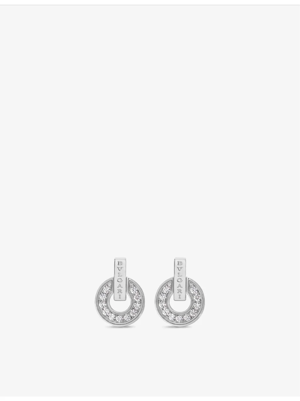 PRODUCT DETAILS - Bvlgari 18ct white-gold and 0.38ct brilliant-cut diamond earrings - 100% 18ct white gold - Diamond - Post-back fastening - Logo embossment, polished finish, ring pendant - Made in Italy - Carat weight: 0.38ct - Carat cut: round brilliant - Carat clarity: IF-VS - Carat colour: D-G - Please refer to the brand’s care instructions - We regret that for hygiene reasons, earrings cannot be exchanged or refunded, unless faulty - Bvlgari prides itself on providing excellent customer service. This includes contacting customers to offer after-sales care and share details about its brand and products. As such, when you order a Bulgari product from us, your details will be passed onto Bvlgari so that it can provide these services to you. Ref: R03984031
