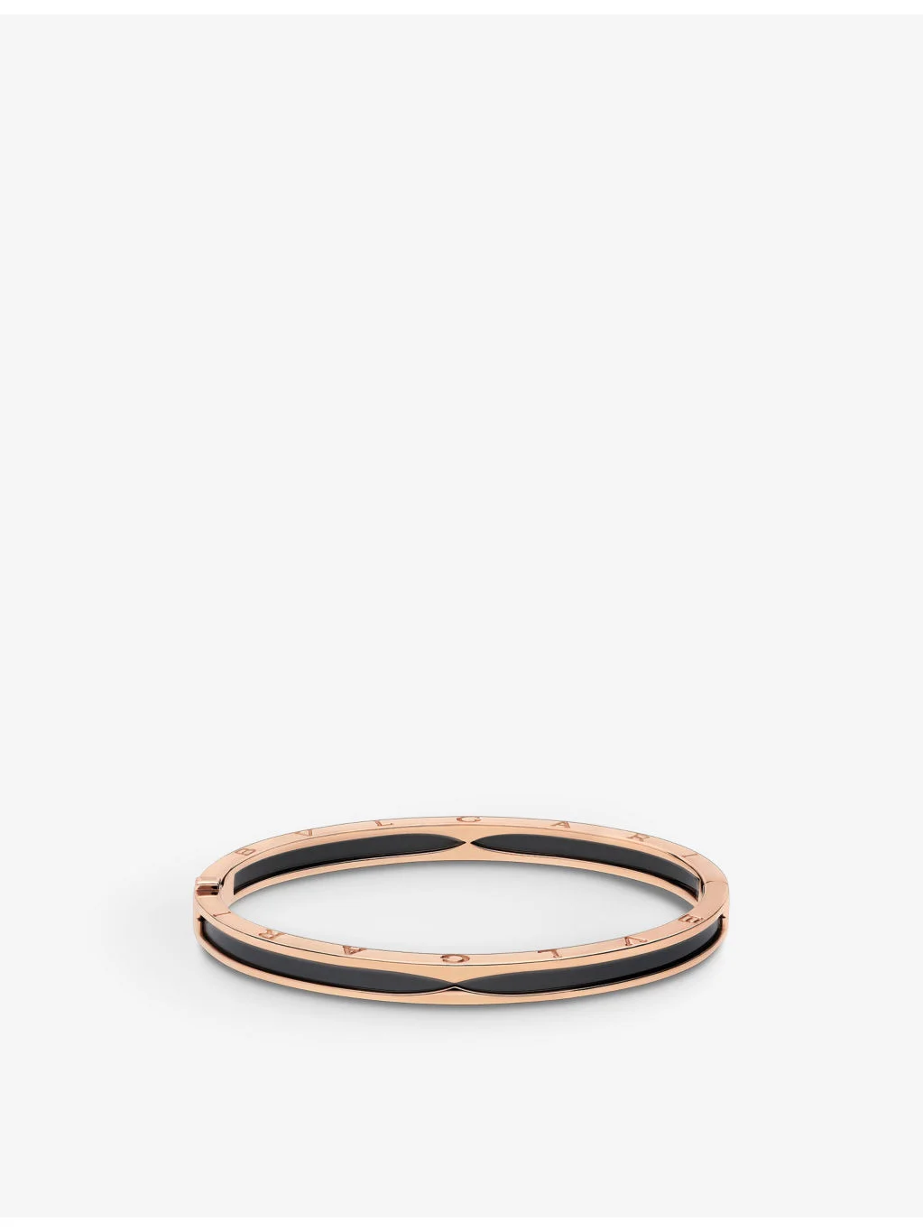 PRODUCT DETAILS - Bvlgari 18ct rose-gold and black ceramic bangle bracelet - 100% 18ct rose gold; 100% ceramic - Box-clasp fastening - Stepped surface, branded engraving, polished finish - Dimensions: 17cm - 19cm - Made in Italy - Please use a soft, dry polishing cloth Ref: R03992269