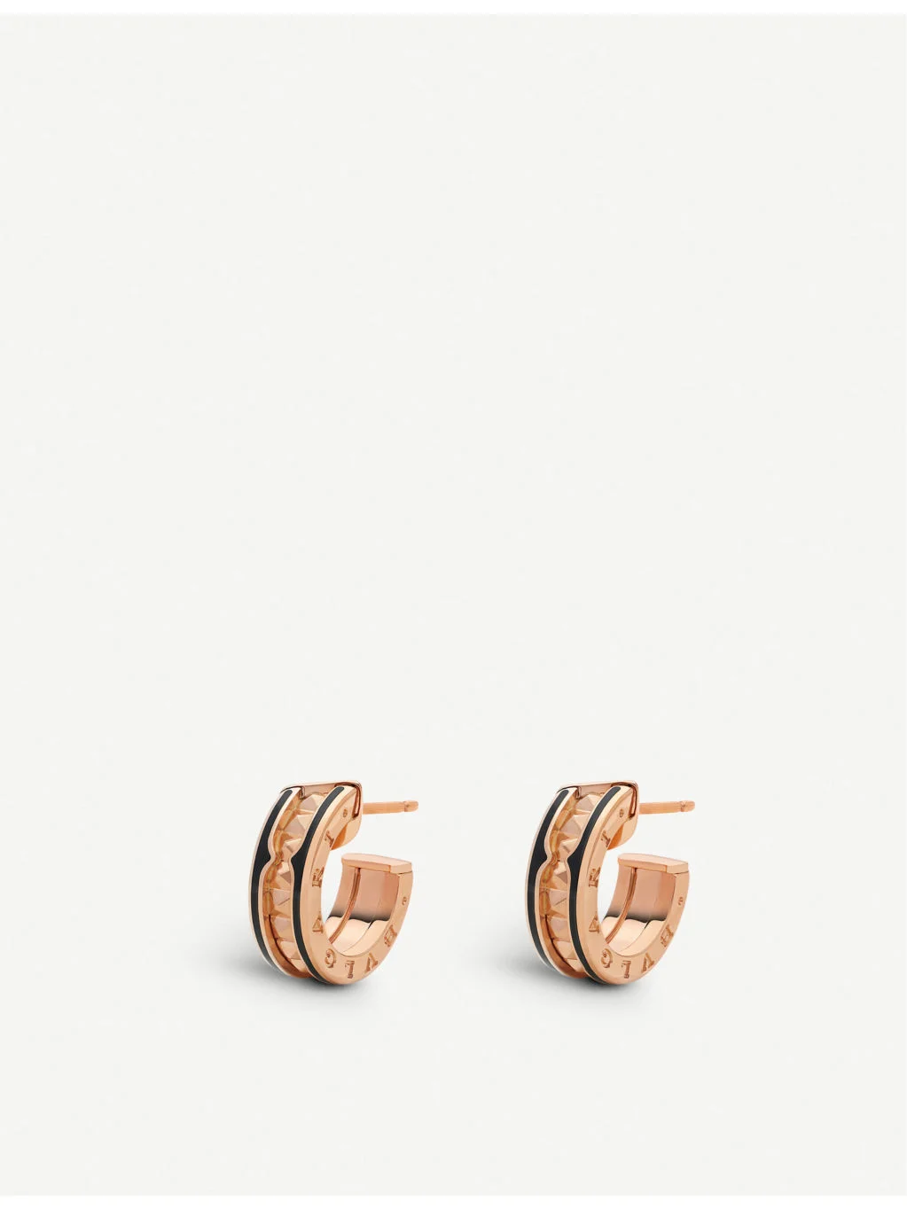 PRODUCT DETAILS - Bvlgari 18ct rose-gold and ceramic hoop earrings - 100% 18ct rose gold; 100% ceramic - Post-back fastening - Ceramic inserts, studded design, polished design, logo engraved - Made in Italy - Please use a soft, dry polishing cloth - We regret that for hygiene reasons, earrings cannot be exchanged or refunded, unless faulty. - Bulgari prides itself on providing excellent customer service. This includes contacting customers to offer after-sales care and share details about its brand and products. As such, when you order a Bulgari product from us, your details will be passed onto Bulgari so that it can provide these services to you. Ref: R04443510