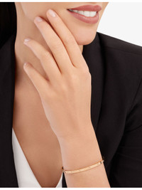 PRODUCT DETAILS - Bvlgari 18ct rose-gold bracelet - 100% 18ct rose gold - Hinge-clasp fastening - Polished finish, logo embellished, minimalist design - Wipe with a clean, dry cloth - Made in Italy - Bvlgari prides itself on providing excellent customer service. This includes contacting customers to offer after-sales care and share details about its brand and products. As such, when you order a Bvlgari product from us, your details will be passed onto Bvlgari so that it can provide these services to you. Ref: R04146237
