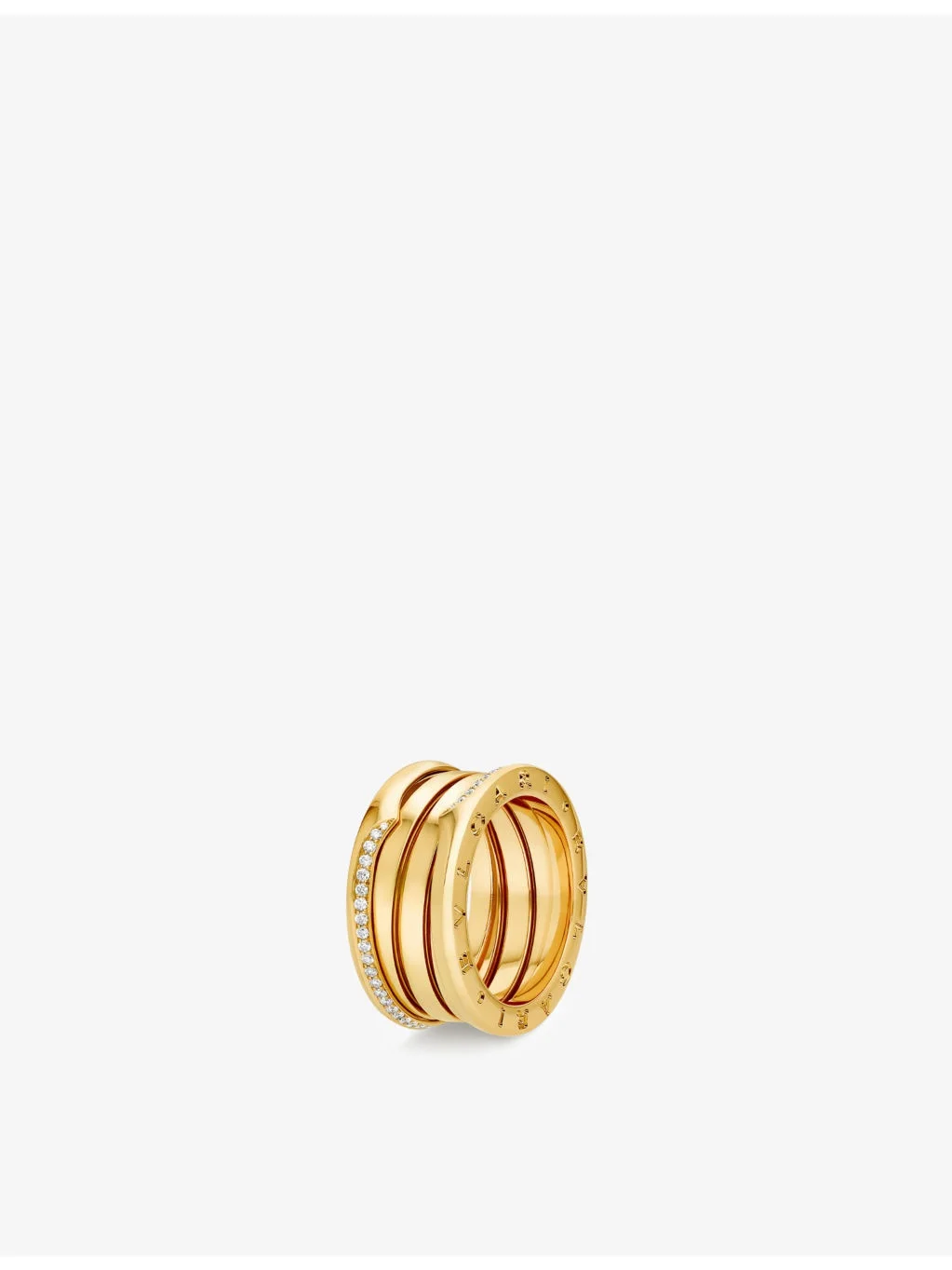 PRODUCT DETAILS - Bvlgari 18ct yellow-gold and 0.22ct brilliant-cut diamond ring - 100% 18ct yellow gold - Diamond - Slips on - Polished finish, pyramid texture around band, two-tone design - Carat weight: 0.22ct - Carat cut: round brilliant - Carat clarity: IF-VS - Carat colour: D-G - Please use a soft, dry polishing cloth - Made in Italy - Two-year manufacturer's warranty - Bvlgari prides itself on providing excellent customer service. This includes contacting customers to offer after-sales care and share details about its brand and products. As such, when you order a Bvlgari product from us, your details will be passed onto Bvlgari so that it can provide these services to you. Ref: R03984001