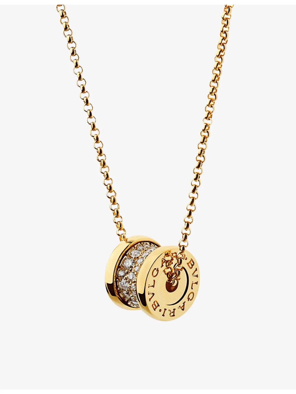 PRODUCT DETAILS - Bvlgari 18ct yellow-gold and 0.31ct brilliant-cut diamond pendant necklace - 100% 18ct yellow gold - Lobster-clasp fastening - Ring pendant, polished finish, brand engraved, pave setting, adjustable chain - Carat weight: 0.31ct - Carat cut: round brilliant - Chain type: cable chain - Chain length: 38cm-43cm - Please refer to the brand’s care instructions - Bvlgari prides itself on providing excellent customer service. This includes contacting customers to offer after-sales care and share details about its brand and products. As such, when you order a Bvlgari product from us, your details will be passed onto Bvlgari so that it can provide these services to you Ref: R03971943