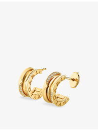 PRODUCT DETAILS - Bvlgari 18ct yellow-gold and brilliant-cut 0.22ct diamond hoop earrings - 100% yellow gold - 50 diamonds - Post-back fastening - B.zero1 collection, pave-set diamonds, brand engraved, polished finish - Carat weight: 0.22ct - Carat cut: round brilliant - Made in Italy - Please use a soft, dry polishing cloth - Two-year manufacturer's warranty - We regret that for hygiene reasons, earrings cannot be exchanged or refunded, unless faulty. Ref: R04468000