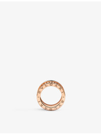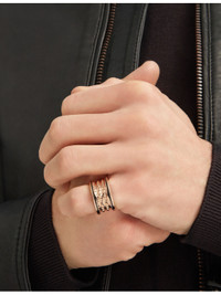 PRODUCT DETAILS - Bvlgari 18ct rose-gold and ceramic ring - 100% 18ct rose gold; 100% black ceramic - Slip-on fastening - Four-band design, polished finish, brand engraved, studded spiral around centre, contrasting inserts at edges - Made in Italy - Please use a soft, dry polishing cloth - Two-year manufacturer's warranty - Bvlgari prides itself on providing excellent customer service. This includes contacting customers to offer after-sales care and share details about its brand and products. As such, when you order a Bvlgari product from us, your details will be passed onto Bvlgari so that it can provide these services to you. Ref: R03926128