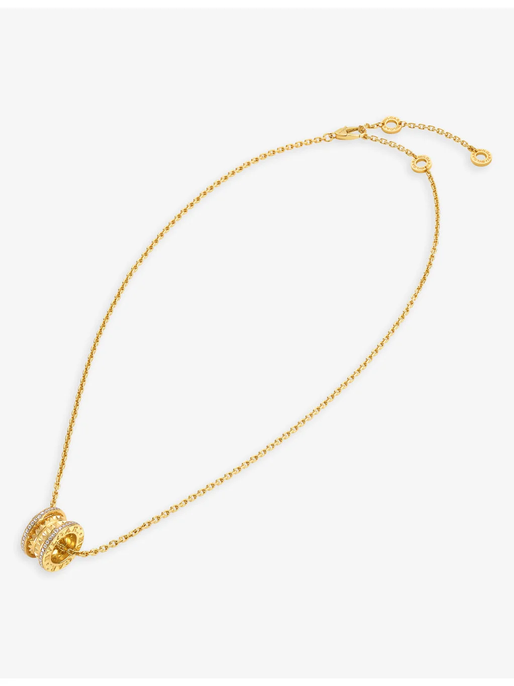 PRODUCT DETAILS - Bvlgari 18ct yellow-gold and 0.38ct brilliant-cut diamond pendant necklace - 100% 18ct yellow gold - Diamonds - Carat weight: 0.38ct - Carat cut: brilliant - Lobster clasp fastening - Pendant at centre with studded spiral, pave setting on the edges, brand engraved, polished finish, four-band design - Chain type: anchor chain - Chain length: adjustable 54-60cm - Wipe with a clean, dry cloth - Made in Italy - Bvlgari prides itself on providing excellent customer service. This includes contacting customers to offer after-sales care and share details about its brand and products. As such, when you order a Bvlgari product from us, your details will be passed onto Bvlgari so that it can provide these services to you. Ref: R03926125